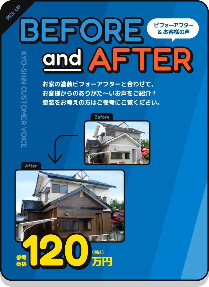 KYO-SHINさんは、ただ塗り替えを進めるのではなく、客の立場になり真剣に考えてくれる所が素晴らしいと感じました。